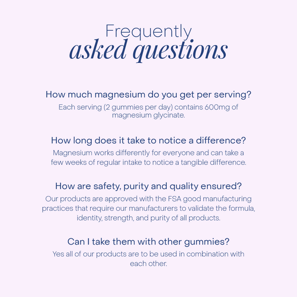 We are constantly looking for ways to evolve and enhance our gummies.In Magnesium Glycinate, we have an cutting-edge ingredient in a highly absorbable form to supercharge your sleep routine.
